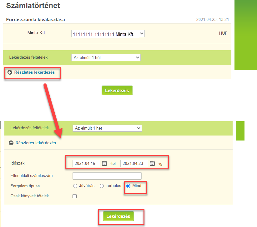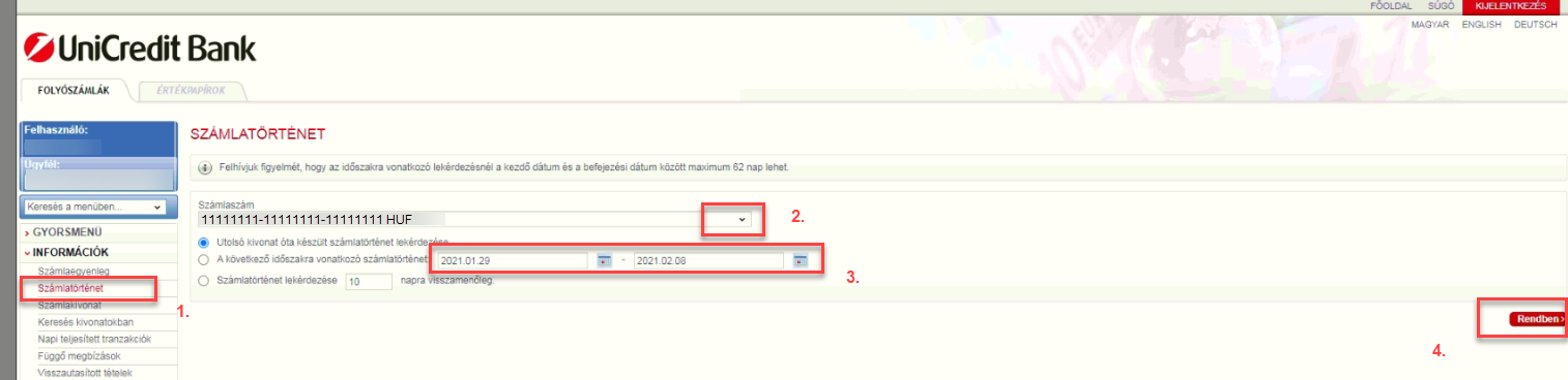 Válasszuk ki a kívánt számlaszámot Válasszuk ki a kívánt időszakot