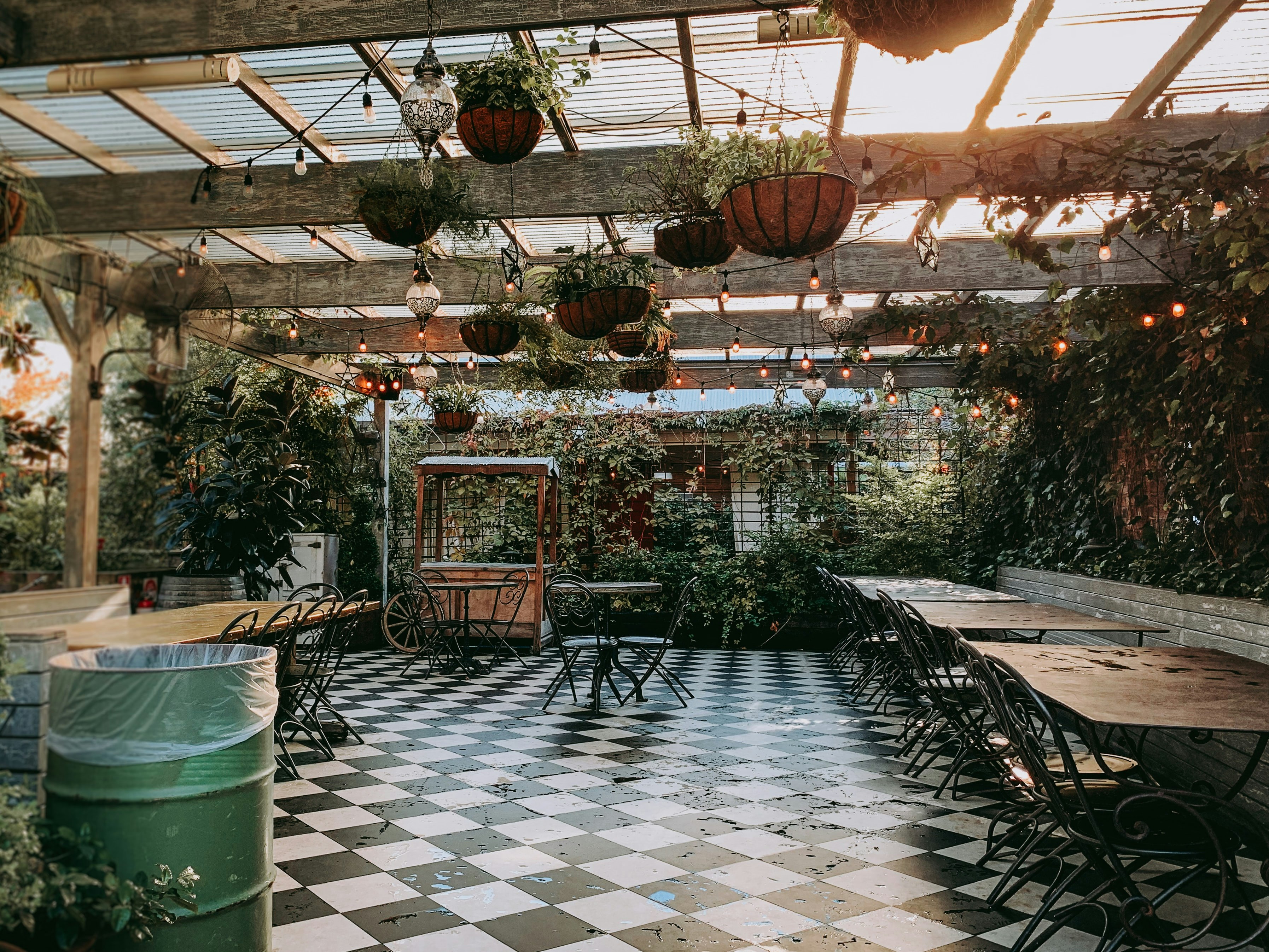 Easy.,@Greenery 🌿,@Walls 🧱, and@Furniture 🪑. Every patio we visit gets a score from 1 to 5 for each. For@Lights 💡, we give a score from 1 to 10 (meaning it’s weighted twice as heavily as the other four factors).@X Factor 🙅♀️