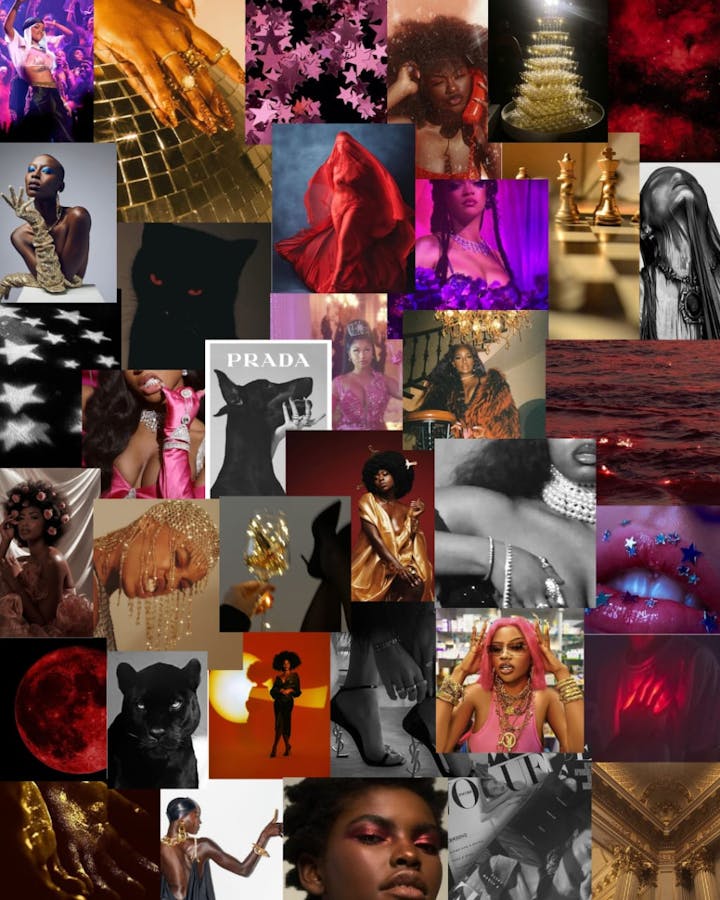 O vermelho, principalmente em tons mais escuros, pode ser associado a força feminina, poder, paixão e desejo.