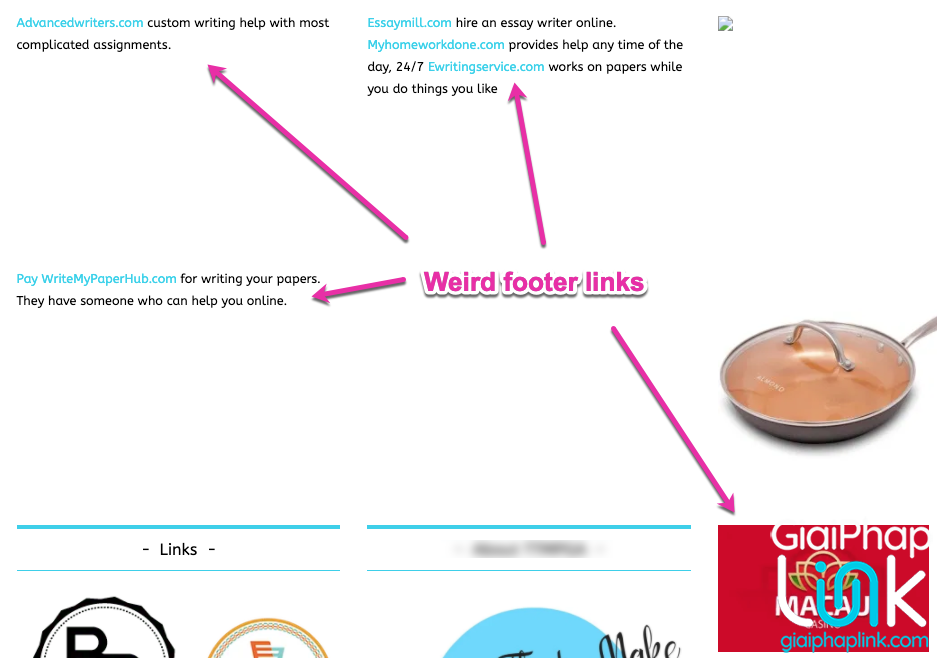 Ví dụ # 2 – Liên kết sòng bạc ở chân trang và spam bài luận