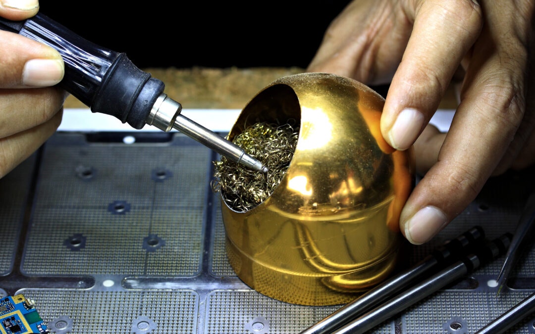 Soldering is the process of using a metal alloy with a low melting temperature to fuse together two other pieces of metal. This is used in all electronics for two reasons: 1. It ensures a strong mechanical connection (i.e. the wires in your computer don’t fall off the circuit board in transit) and 2. Provides a highly conductive electrical connection.