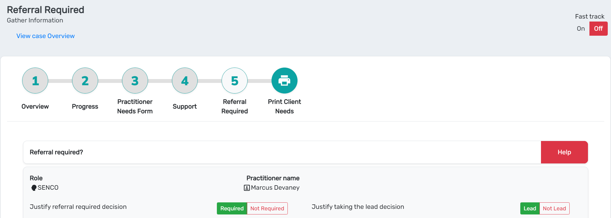 This system is currently used to manage a case into an under 19s Autism Assessment Pathway
