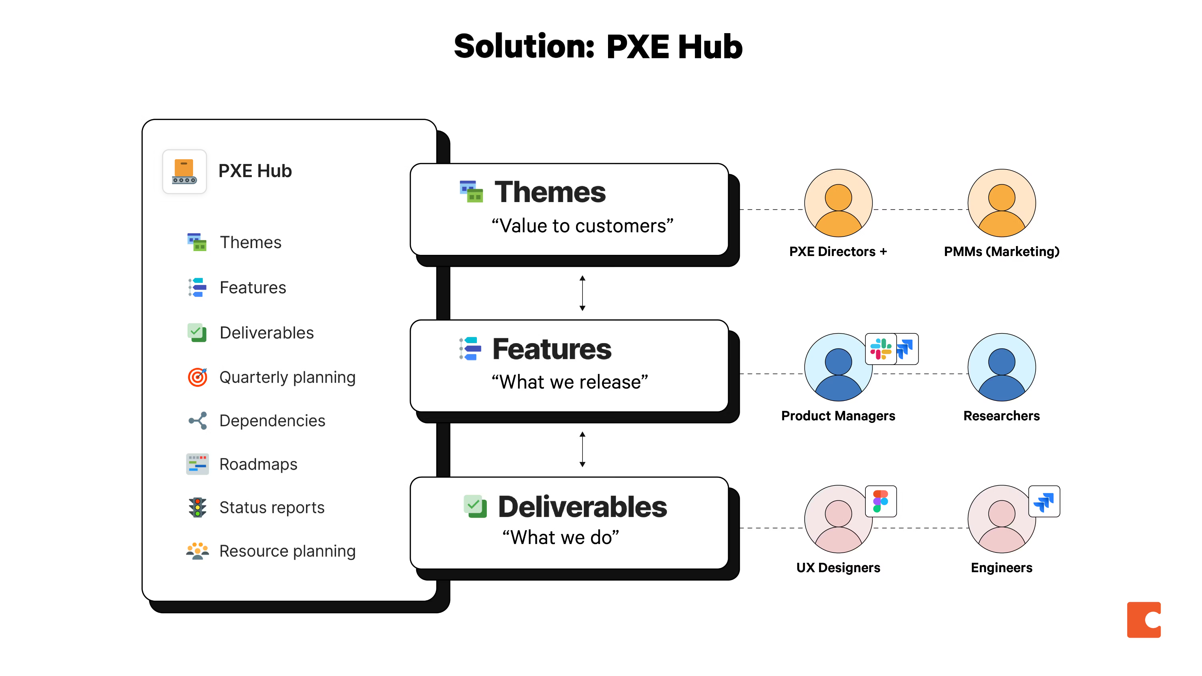 My team now has a single place to see all product work. Compared to the communication cyclone we faced before, the PXE Hub brings the product and engineering teams’ work together. We can now tell a cohesive story, closing the gap between developer and customer.