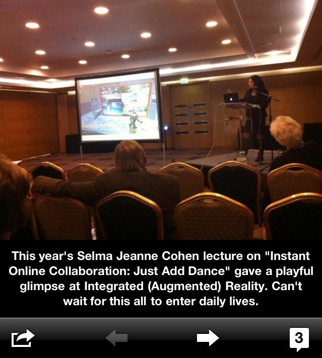 I was honored to receive Fulbright’s esteemed Selma Jeanne Cohen Award in 2012. At the Annual Fulbright Conference in London that year, I gave a presentation entitled “Instant Online Collaboration: Just Add Dance,” which focused on methodologies to attain immediate online collaboration within groups of people, by using movement to link physical to digital actions in immersive environments.