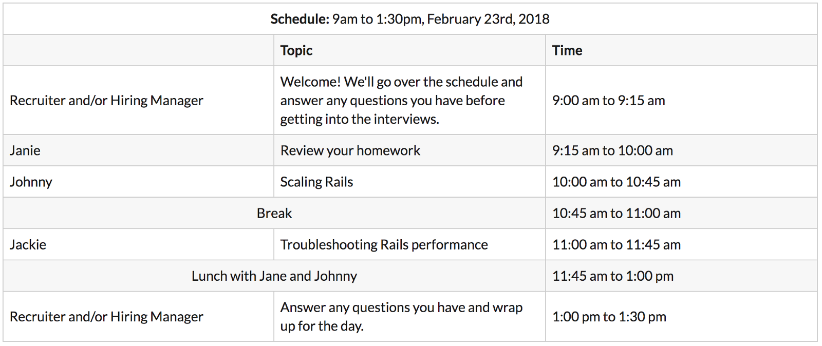 Sample onsite interview schedule: