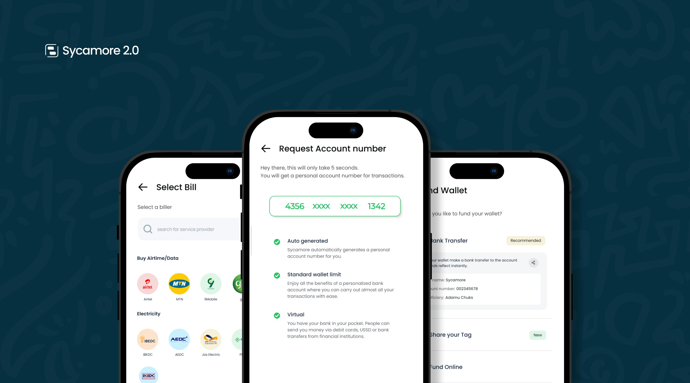 For flexibility, we maintained the ability to make Sycamore to Sycamore transfers using the recipient’s account number.