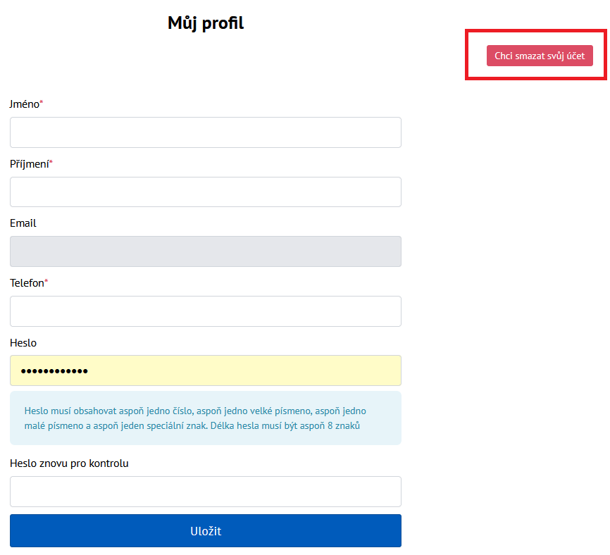 Chci smazat svůj účet.