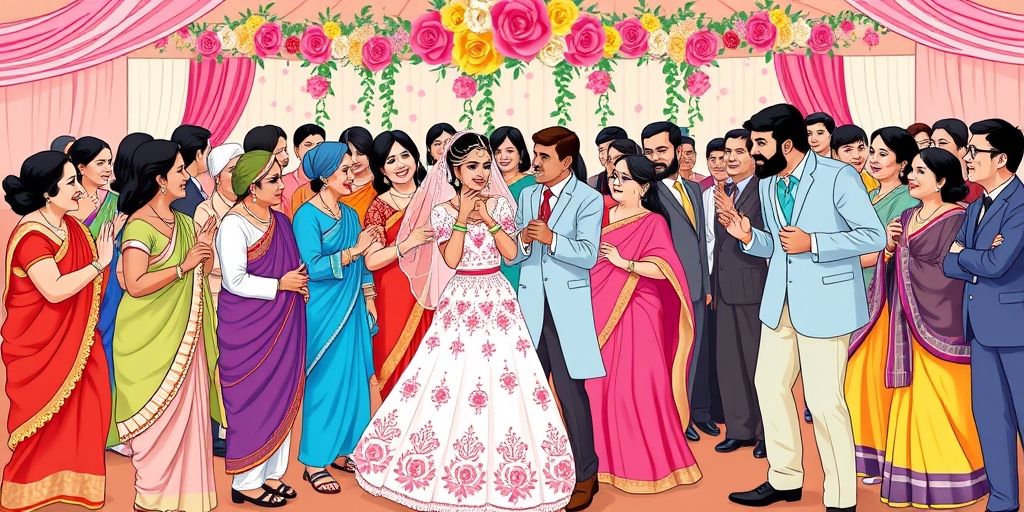 What grand family event is being celebrated in this picture? How do the family members express their joy and participation in this event? What does a gathering like this signify for the family as a whole? ____________________________________________________________________________________________________________