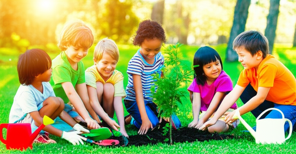 What environmental action are the children performing in this picture? How does this action help improve the environment? Which of the 3 R’s of conservation is most closely related to the outcome of planting trees, and why? ____________________________________________________________________________________________________________