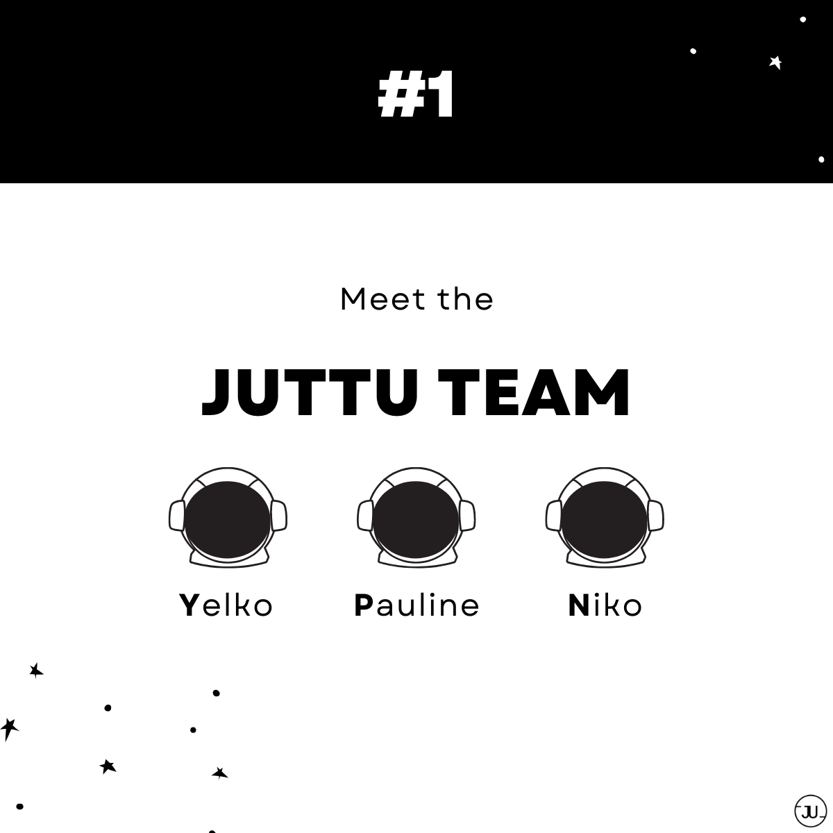 👋 Hellooo, we’re so glad you’re here! Are you wondering who the hell is working on Juttu? Well that’s us: Yelko, Pauline and Niko! Nice to meet you!