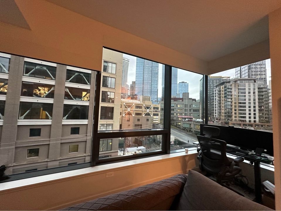in downtown Seattle. 2 minutes from whole food, restaurants and all the downtown Amazon/Google campus. Please contact Ilham at