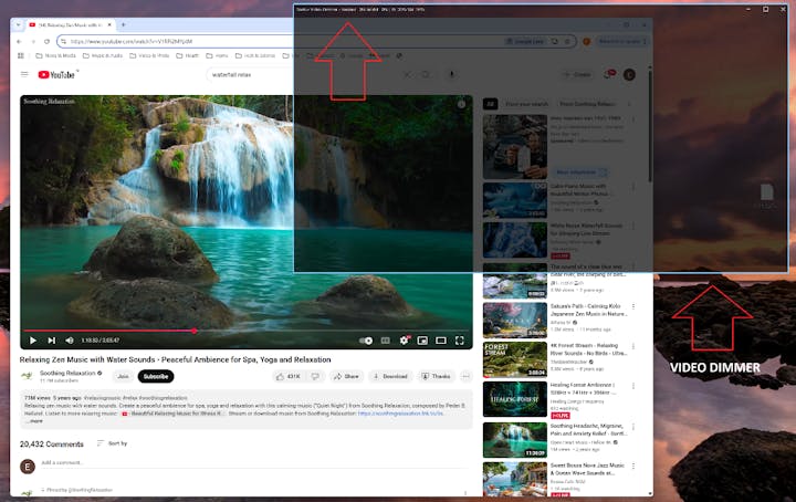 After this the VideoDimmer will appear on your desktop. You can drag it to the (secondary) monitor you want to control on top of any application that is running in a window. Examples: YouTube, NetFlix, computer games running inside a window, Media Player, DVD player etc.