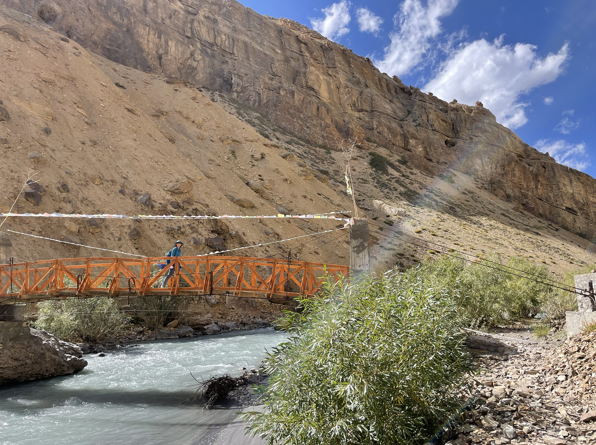 Тишина, разлитая в соседней долине, вдруг обращается в такой дорогой моему сердцу звук полноводной горной реки, реки Занскар, о которой так трепетно рассказывает нам гид. Я вижу себя маленькой девочкой, мечтающей, когда вырасту, сходить в Янгиабад пешком, вдоль горной речушки, Катта Сая, текущей в крошечной долине, где звук её становится для меня неотъемлемым атрибутом жизни в легком свете и радости. И я вполне вдруг осознаю себя взрослой, спустя почти 30 лет, так и не осуществившей пока свою детскую мечту, однако, топающей траверсом склона по огромной гималайской долине.