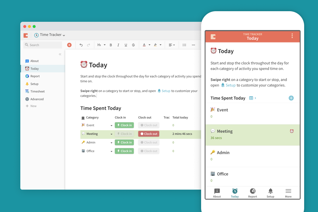 This doc works on desktop too. What's more, you can use Coda's building blocks to fully customize or extend it. Some examples: