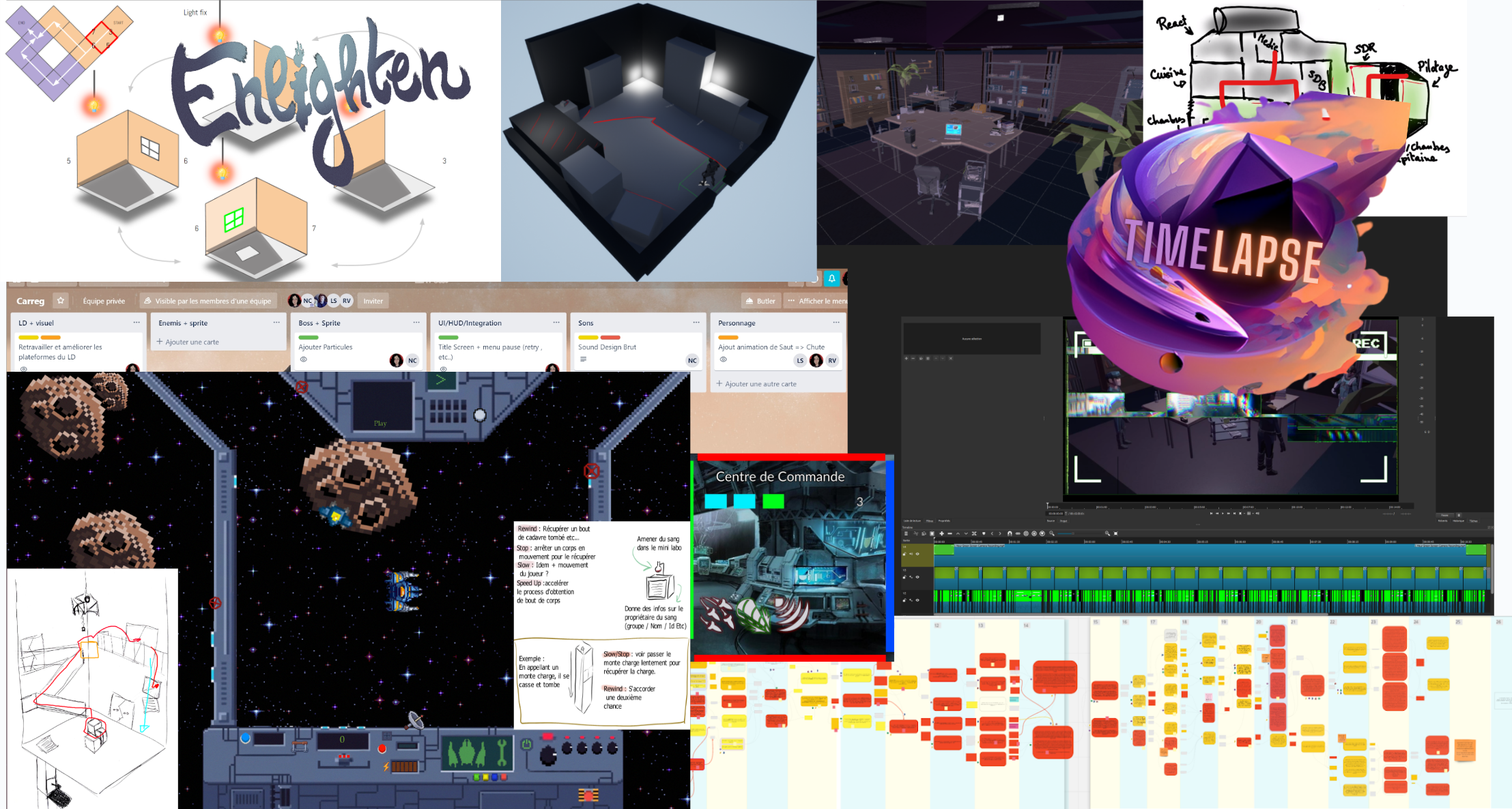 Ma passion pour la conception de jeux m'amène à prototyper et à générer constamment de nouvelles idées à partir de diverses sources d'inspiration (Film, Manga, Art en général). En dehors de mon expérience professionnelle, j'aime également participer à des game jams pour explorer de nouvelles idées et expérimenter avec les mécaniques de jeu.