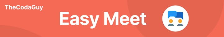 Ready to purchase the template? You can buy the template using the buttons below. Choose the template as is, or get a 30 min meeting with The Coda Guy to build further custom integrations on your copy of EasyMeet