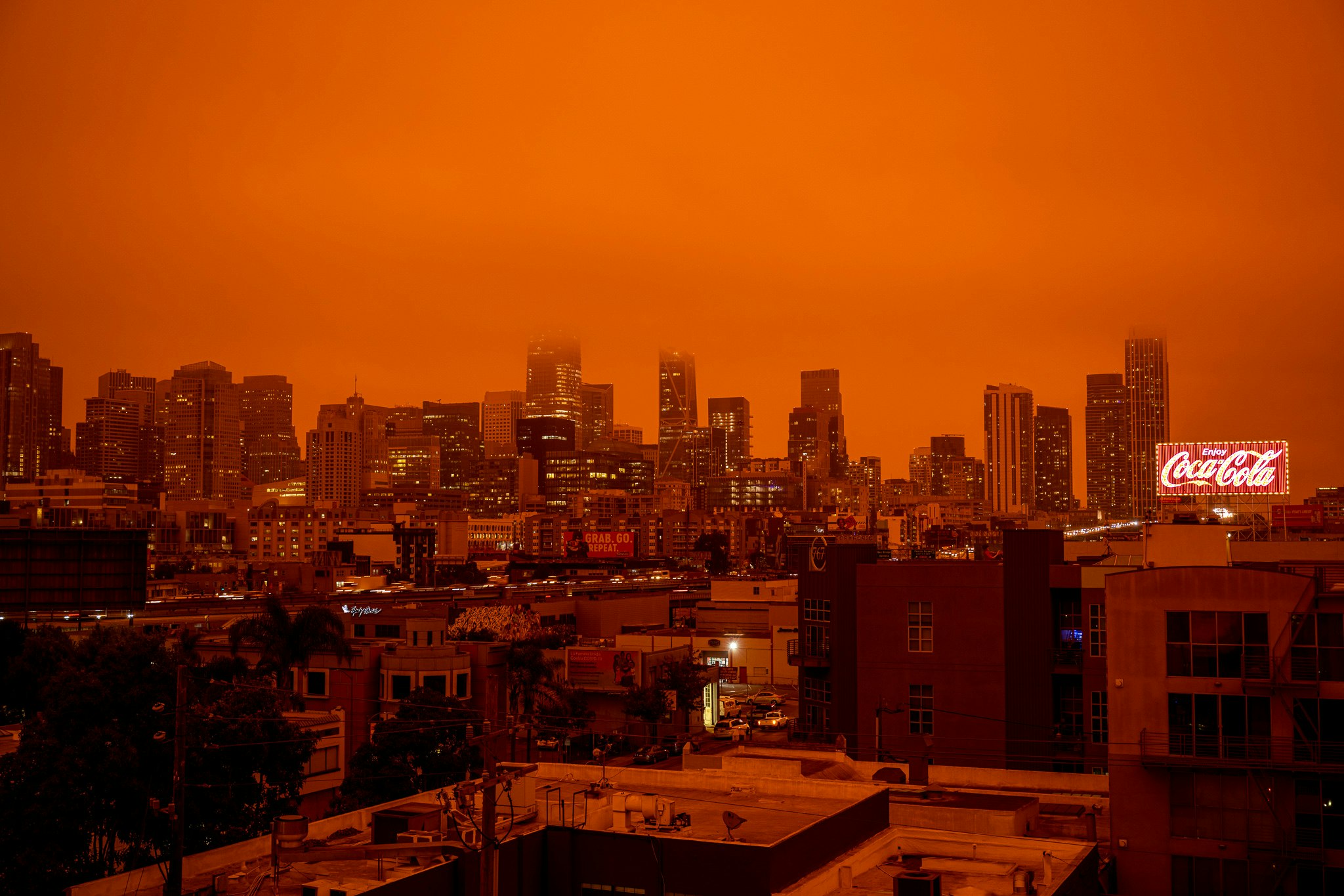Picture of the San Francisco skyline during apocalypse during the wildfires this year. (photo credit )