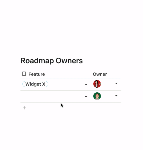 Hover over your table and click the + New row below your bottom row. Alternatively, click into or select your bottom row, then hit Enter on your keyboard.