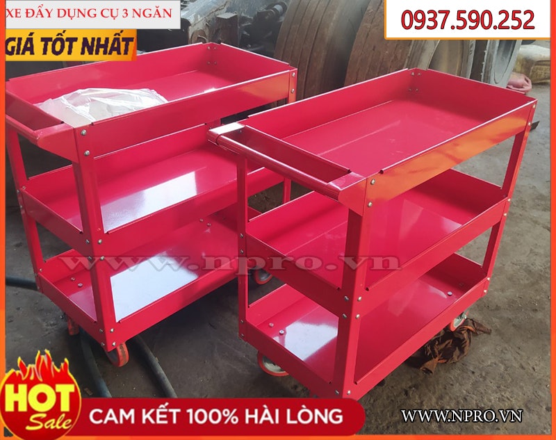 là sản phẩm chuyên dụng trong cửa hàng sửa chữa xe máy, gara ô tô, head và giả head Honda, Yammaha, Piaggo,… hoặc xưởng gia công cơ khí, xí nghiệp, gia đình… Xe đẩy Npro được sản xuất tại Việt Nam dày dặn, chắc chắn. Xe đẩy dụng cụ 3 ngăn một dạng cơ bản cung cấp với thiết kế 3 ngăn chịu tải, đồ nghề được để lộ thiên và có tính linh động. Đặc điểm xe đẩy dụng cụ 3 ngăn tại NPRO