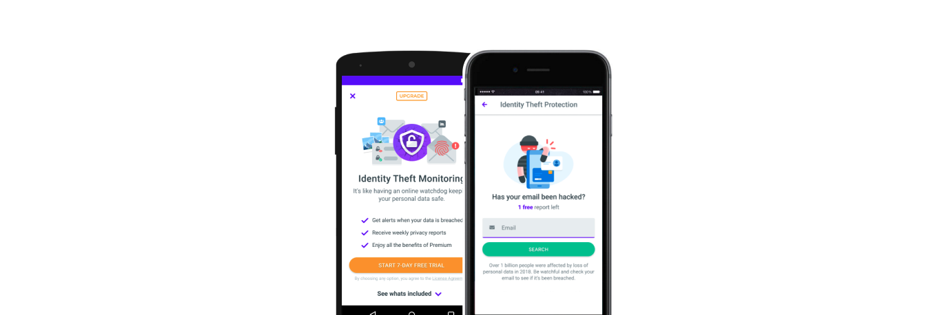 Incorporating extra research insights, we evolved the initial release into a holistic Identity Theft Monitoring concept. This enhanced the premium user's security with Breach Alerts, multi-account support, breached data visibility, and App Privacy Scan.