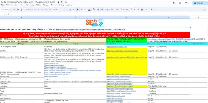 Bộ Tài Liệu Social Profile Entity SEO Bao Gồm: