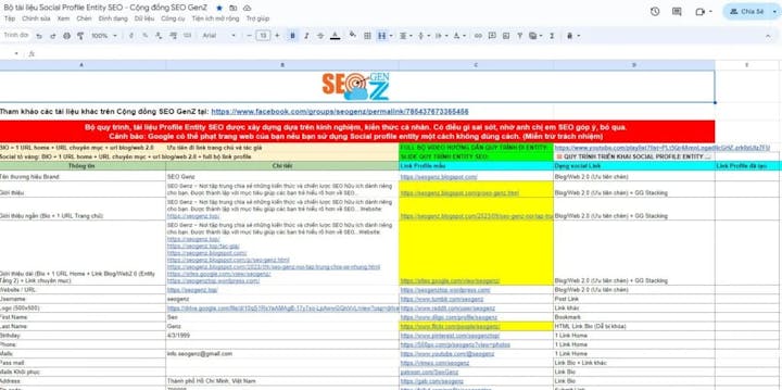 List of Profile Entity SEO: Suggested social networks for creating profiles. Information Form Templates: Detailed guidance on how to fill out each profile. : Step-by-step details for executing the strategy effectively. Instructional Videos: Visual, easy-to-understand guides for each step. Google Drive Documents: Store all related documents for easy access and reference. Important Notes: