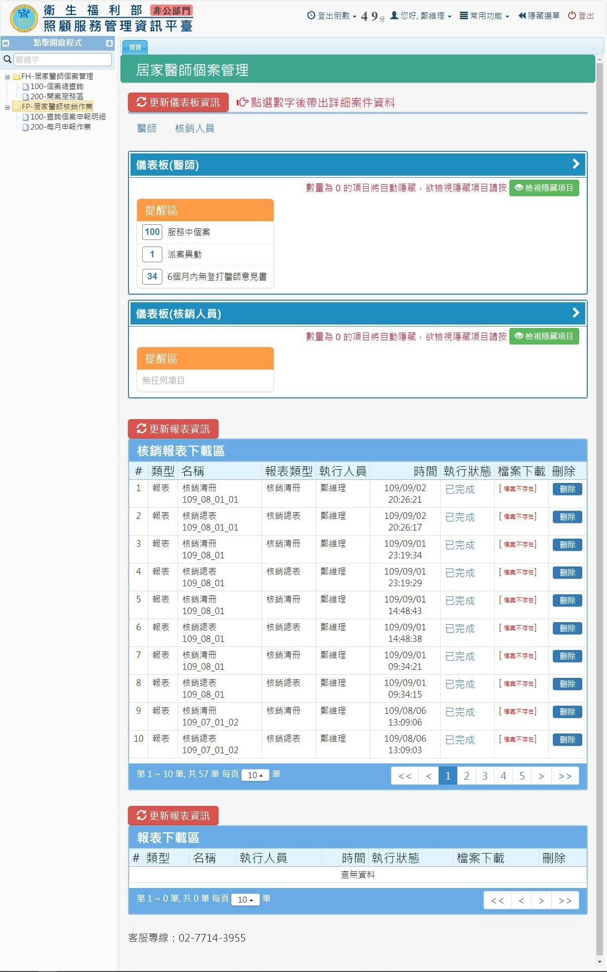 從1081128派案到1090908,至今服務100案。